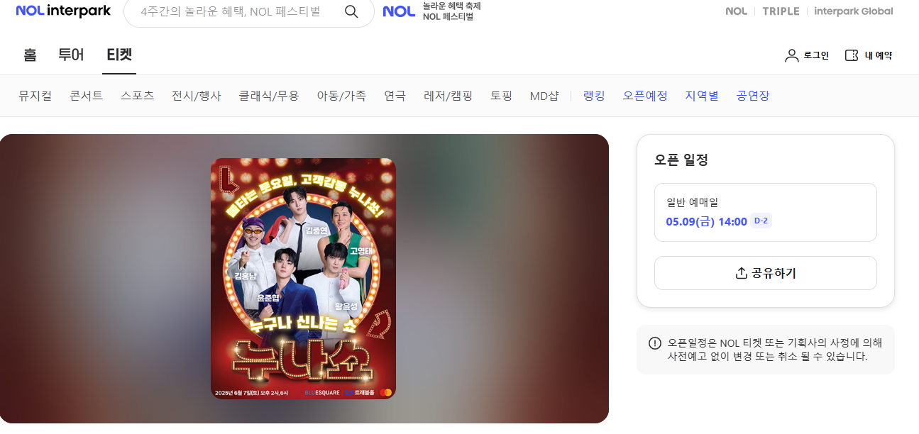 3. 장윤정 누.나.쇼 콘서트 예매 방법